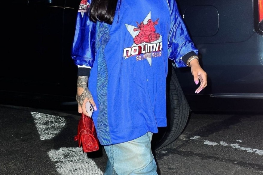 Rihanna was dressed casually for her outing in New York. She wore baggy jeans, an oversized No Limit Records sweatshirt, a pair of lace-up heels and Tiffany & Co. jewelry.