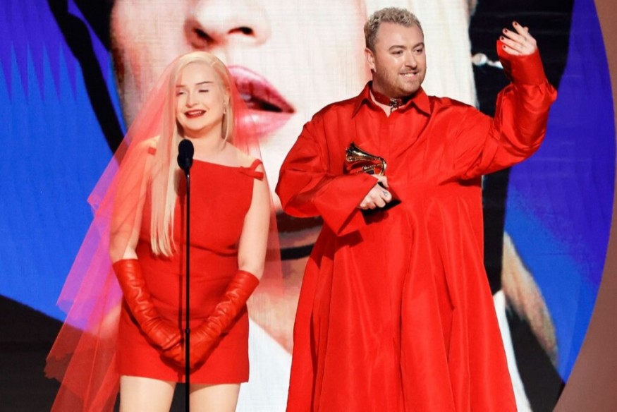 Sam Smith and Kim Petras took to the stage to accept the award wearing daring red ensembles, with the German singer stepping forward to deliver the acceptance speech.