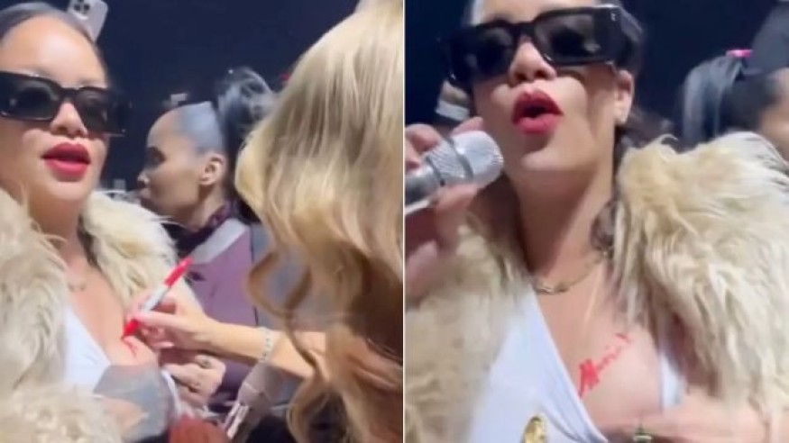 In videos circulating on social media, Mariah used a red marker to sign her name on Rihanna’s breast. Grabbing a microphone, an ecstatic Rihanna shared the moment with the audience, exclaiming, "Mariah Carey is signing my t*t, y'all. This st is fking epic." Afterward, she proudly displayed the signature, adding, "Look at that s**t."